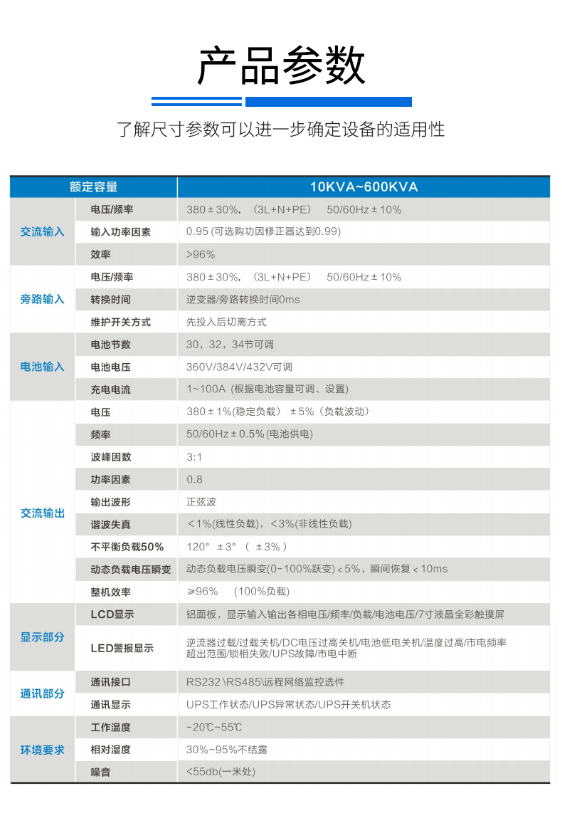 輸出功率:10KVA/8KW ~ 800KVA/640KW